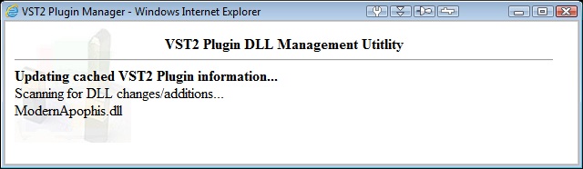 After that, it will scan your VSTScanPaths for new or altered Plugin DLLs, it will analyse them and create .ini files for newly found Plugins or syncs information with previously created .ini files for Plugins: |